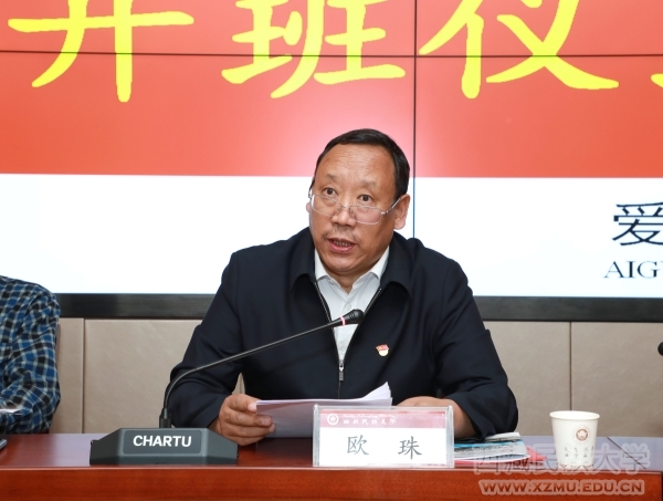 欧珠代表学校党委、行政和全体师生对“自治区教育系统领导干部党性教育研修班”在民大开班表示热烈祝贺,向参加培训的全体学员表示欢迎,对自治区教育厅一直以来的有力领导和大力支持表示感谢。他简要介绍了学校的办学历史、办学经验和办学成就。他指出,西藏民大诞生于西藏和平解放初期、民主改革前夕的特殊历史时期,担负着为西藏和平解放后的各个时期培养各类人才的特殊历史使命,为西藏和平解放后各个时期的经济社会发展做出了特殊的历史贡献。在学校建校60周年之际,习近平总书记发来的贺信更是明确指出了学校发展的指导思想、目标任务和重要举措,对学校发展也寄予了新的希望。欧珠强调,自治区教育厅始终关注和大力支持民大的建设和发展,把教育系统处级领导干部党性教育研修任务交给民大,充分体现了教育厅对民大党建工作的高度肯定,对民大继续教育工作的大力支持。他希望继续教育学院及学校相关部门要站在讲政治、讲大局的高度,切实做到思想认识到位、具体措施到位、责任落实到位,积极与教育厅相关处室沟通衔接,确保全体参训学员学有所获、确保培训取得实效。